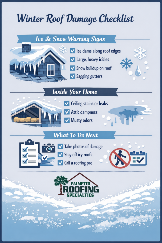 At Palmetto Roofing Specialties, we see firsthand how winter storms impact roofs. Understanding what’s happening above your head can help you catch problems early and protect your home before small issues turn into bigger ones.