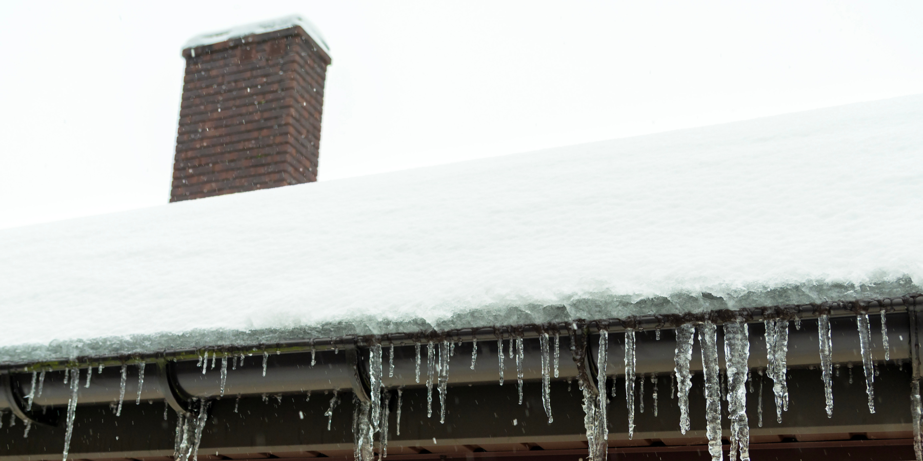 snow and icicles on roof and gutters